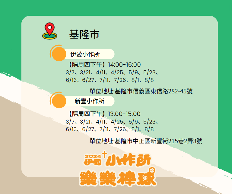 基隆中正【周四下午】新豐小作所 樂樂棒球陪練志工