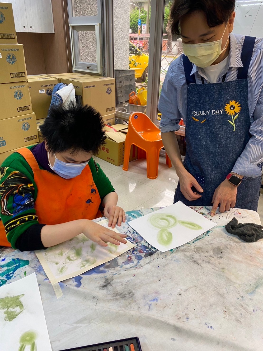- 服務內容:個別化陪伴身障者藝術活動(固定紙張、磨粉彩等...)