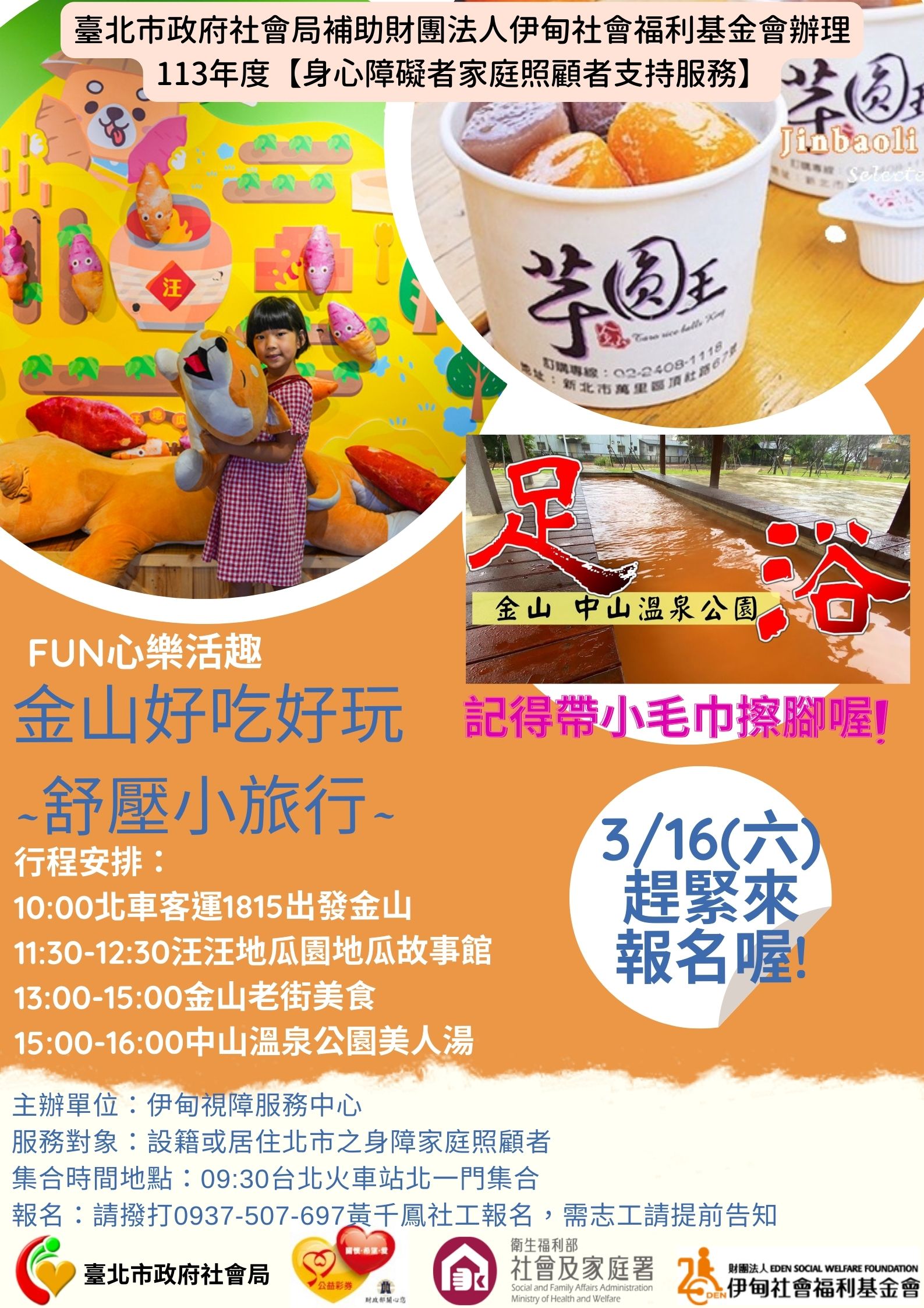 台北【3/16(六)協助視障者】家庭照顧者金山紓壓小旅行