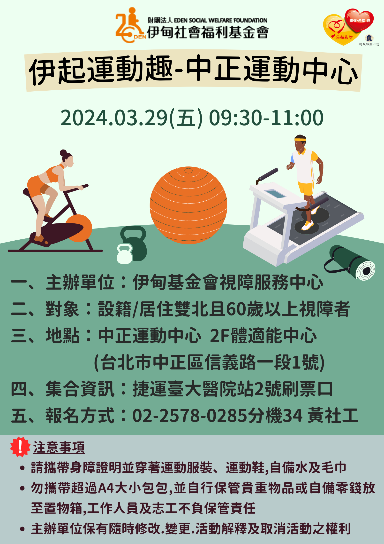 台北【3/29上午/協助視障長者】伊起運動趣-中正運動中心