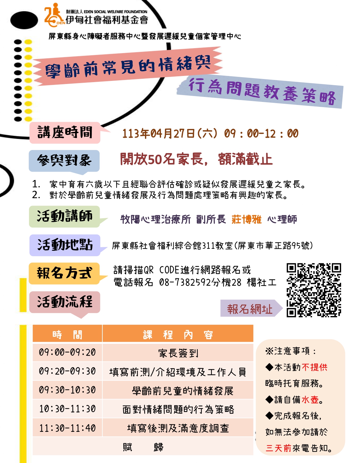 【屏東市4/27上午】親職講座-活動志工