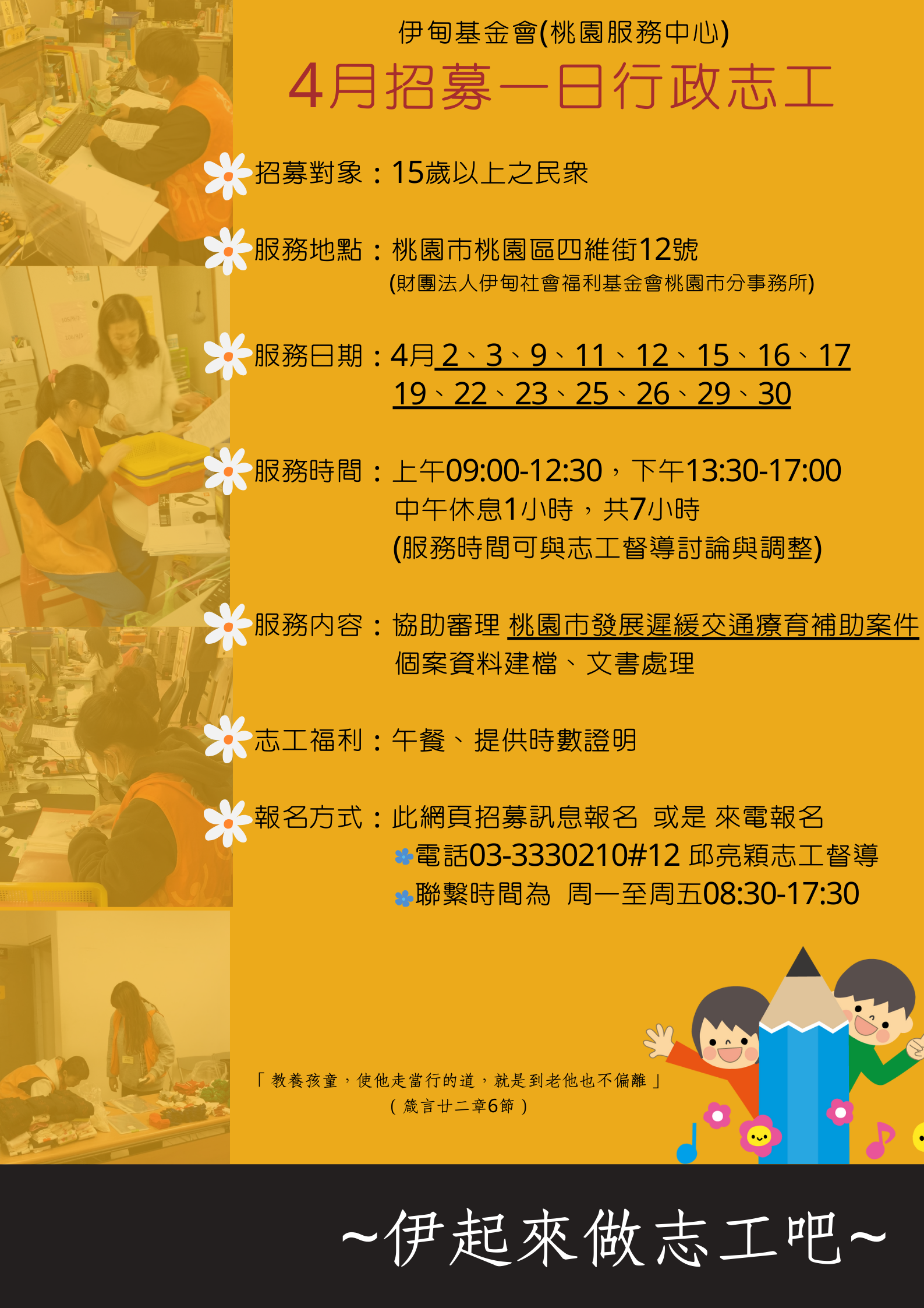 ☆志工福利:午餐、提供時數證明
