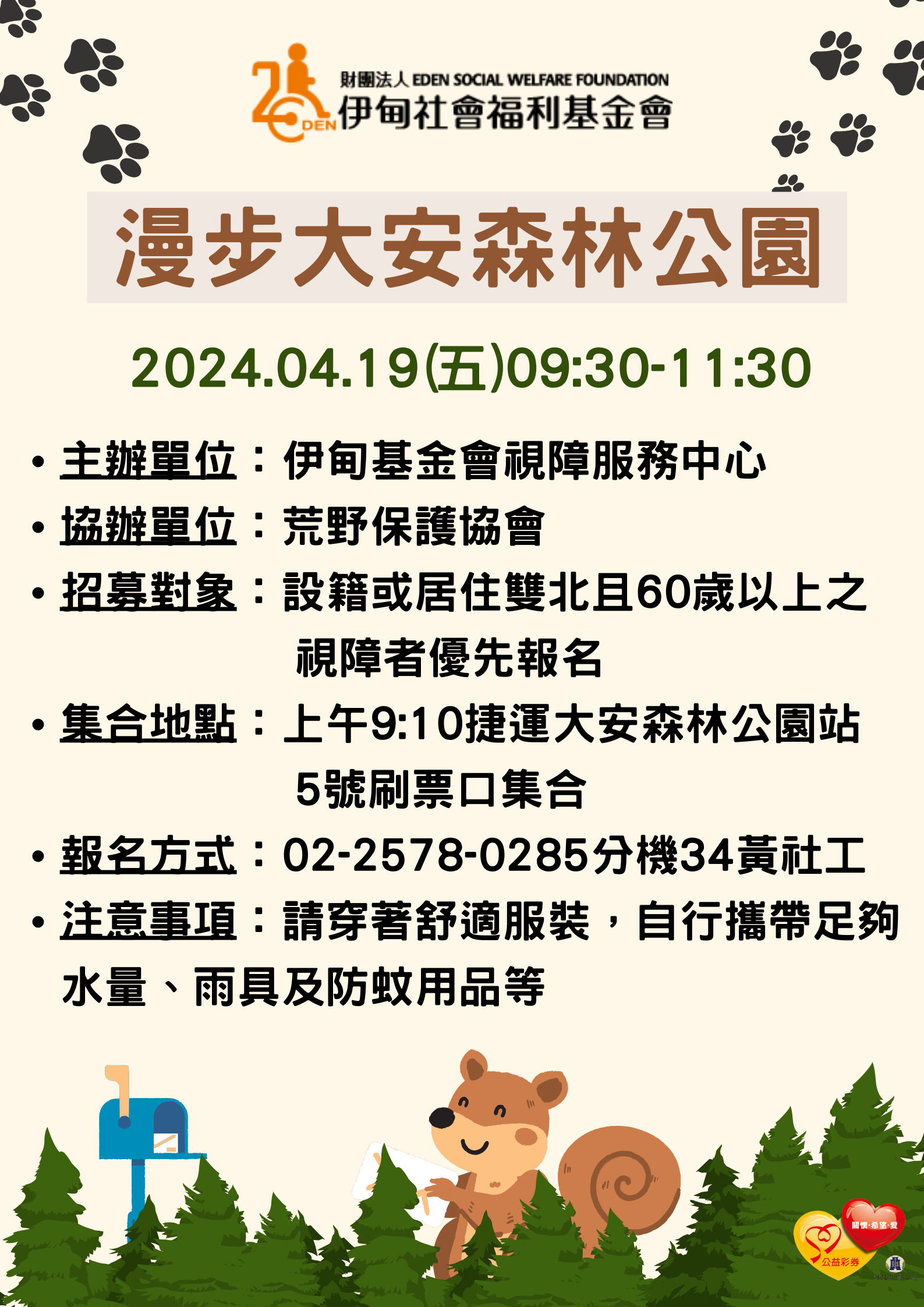 台北【4/19上午-協助視障者活動】漫步大安森林公園