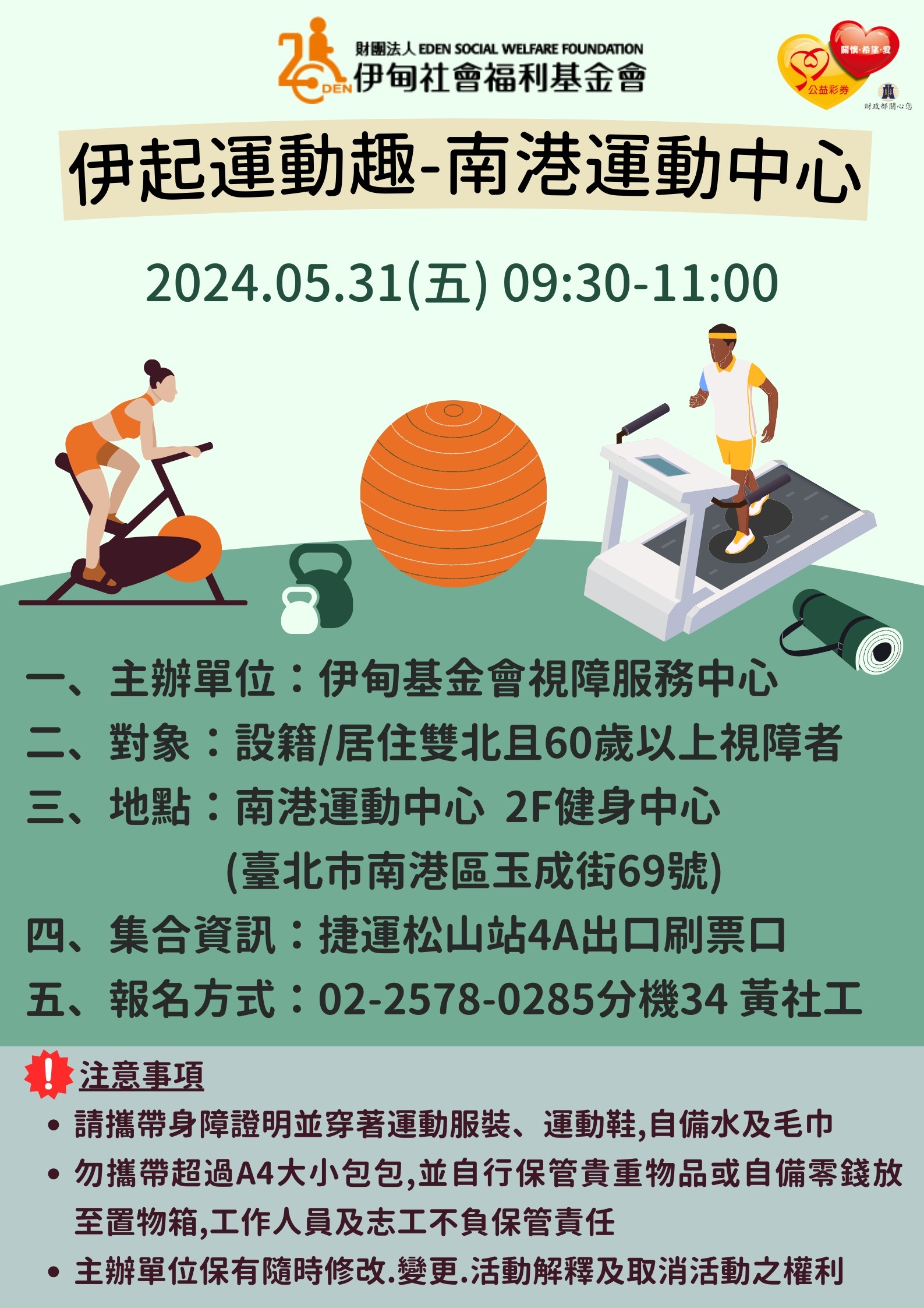 台北【5/31上午-協助視障者活動】伊起運動趣-南港運動中心