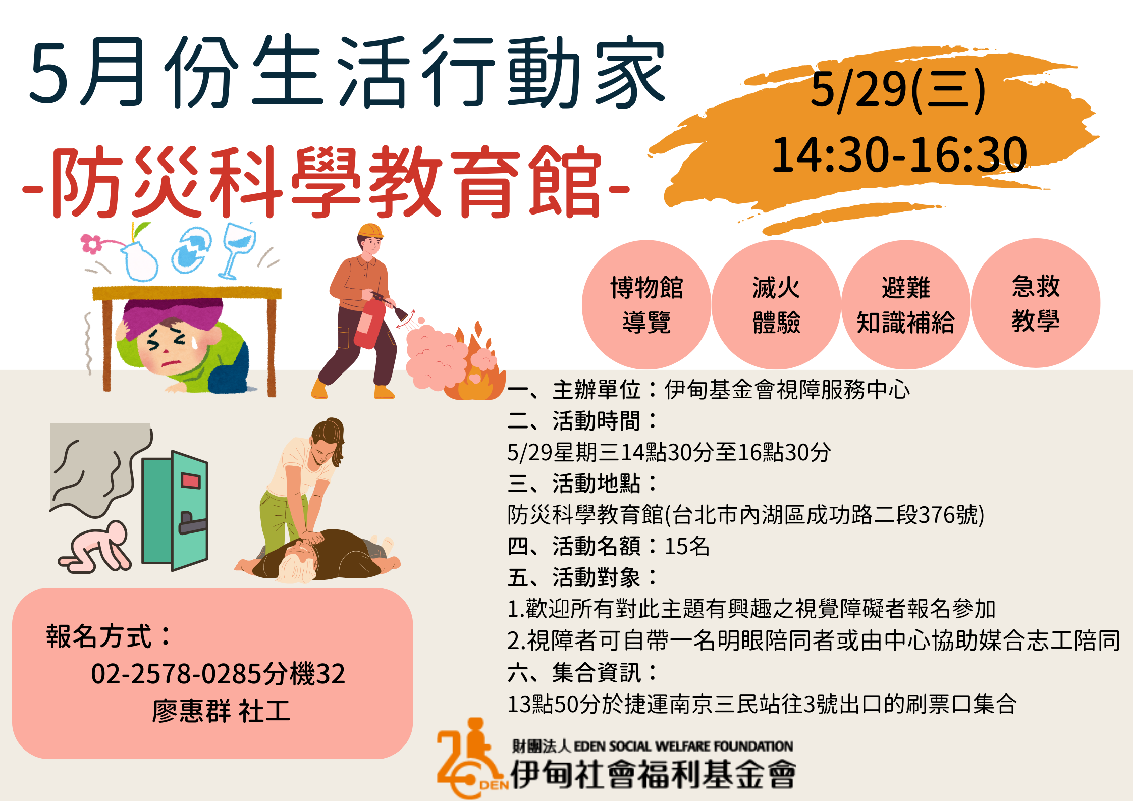台北【5/29-協助視障者】生活行動家-防災科學教育館參觀