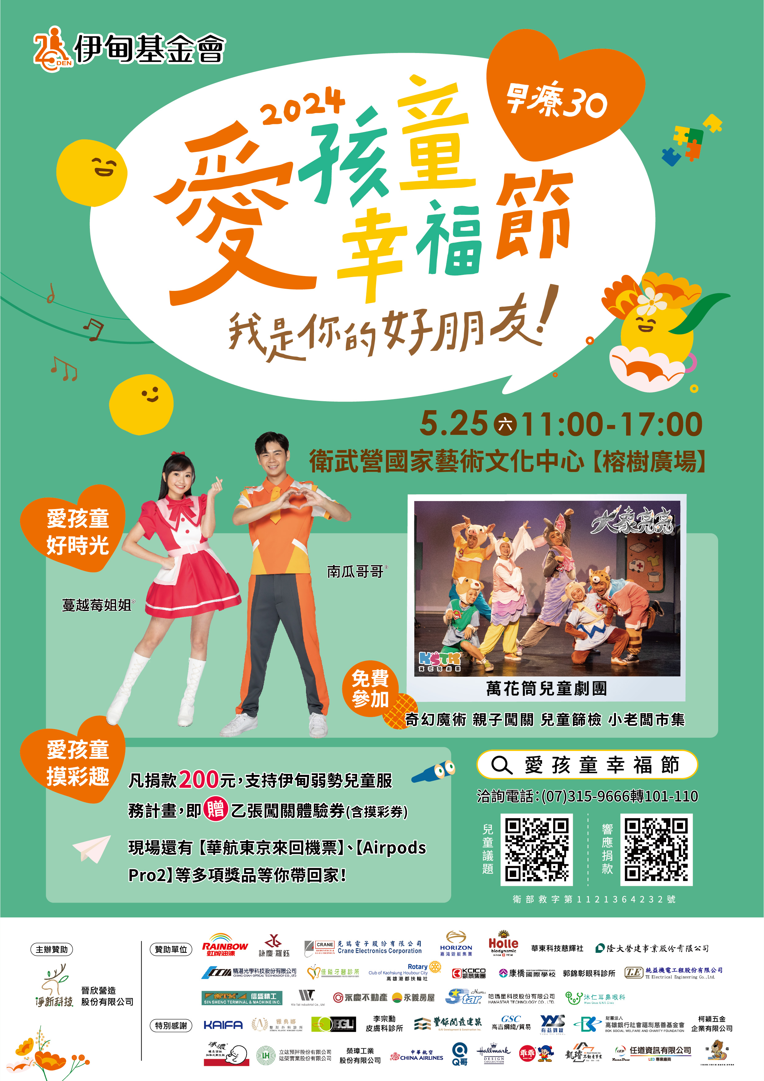 各位熱心的志工伙伴平安,今年的愛孩童幸福節將於5/25(六)登場,也剛好是我們高雄早療30周年!