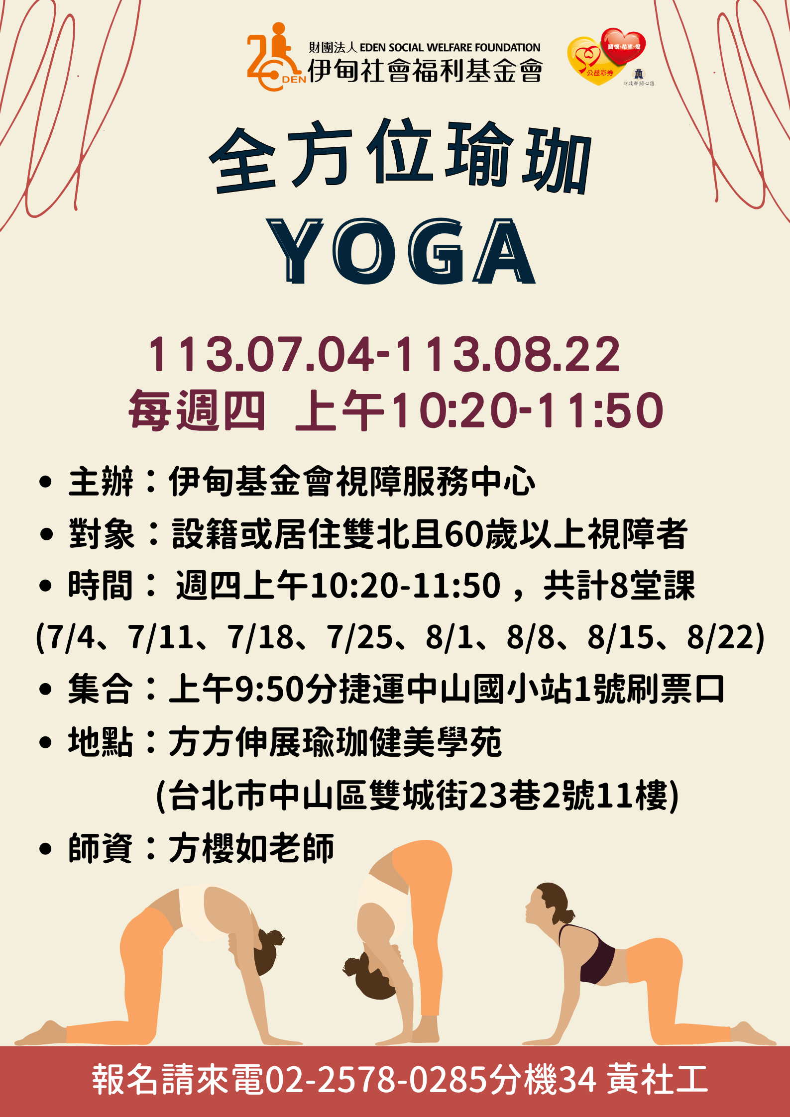 一、活動主題:視障長者課程-全方位瑜珈(可單場次報名)