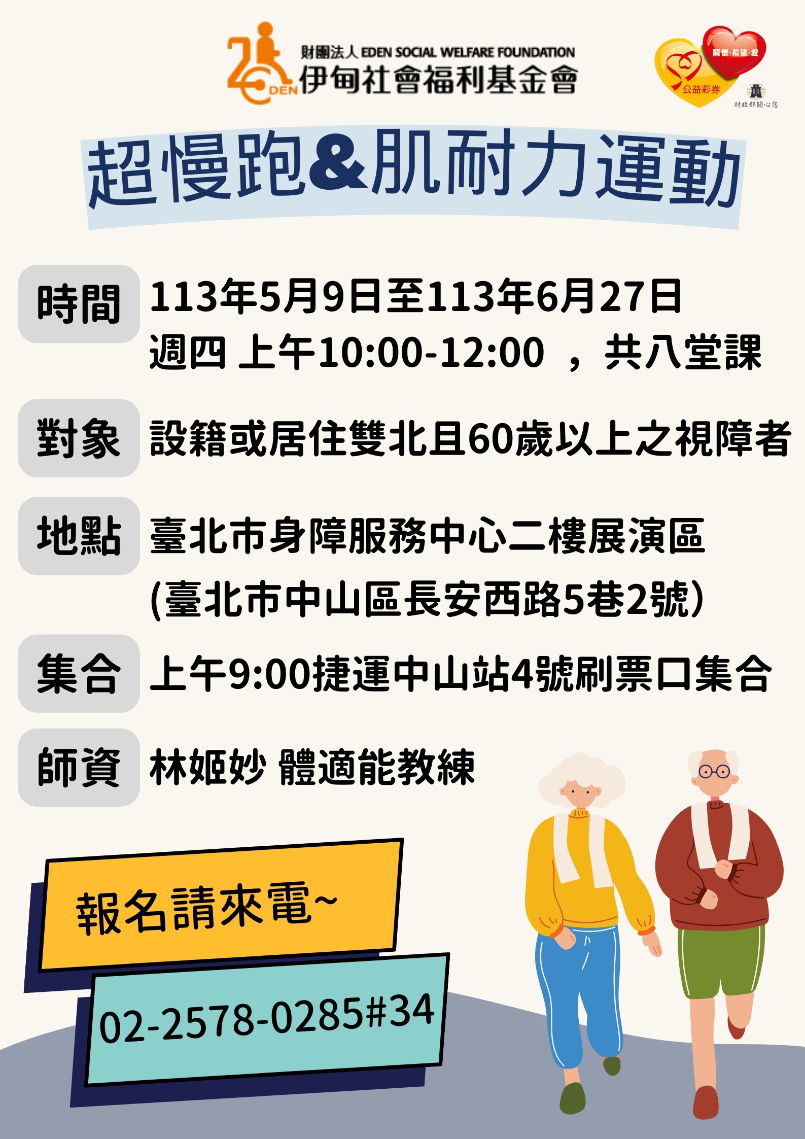 台北【6/6上午】協助視障長者超慢跑與肌耐力運動