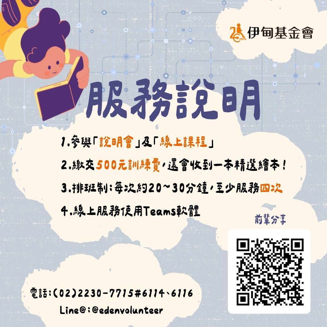 *聯絡資訊:伊甸基金會 志工招訓中心