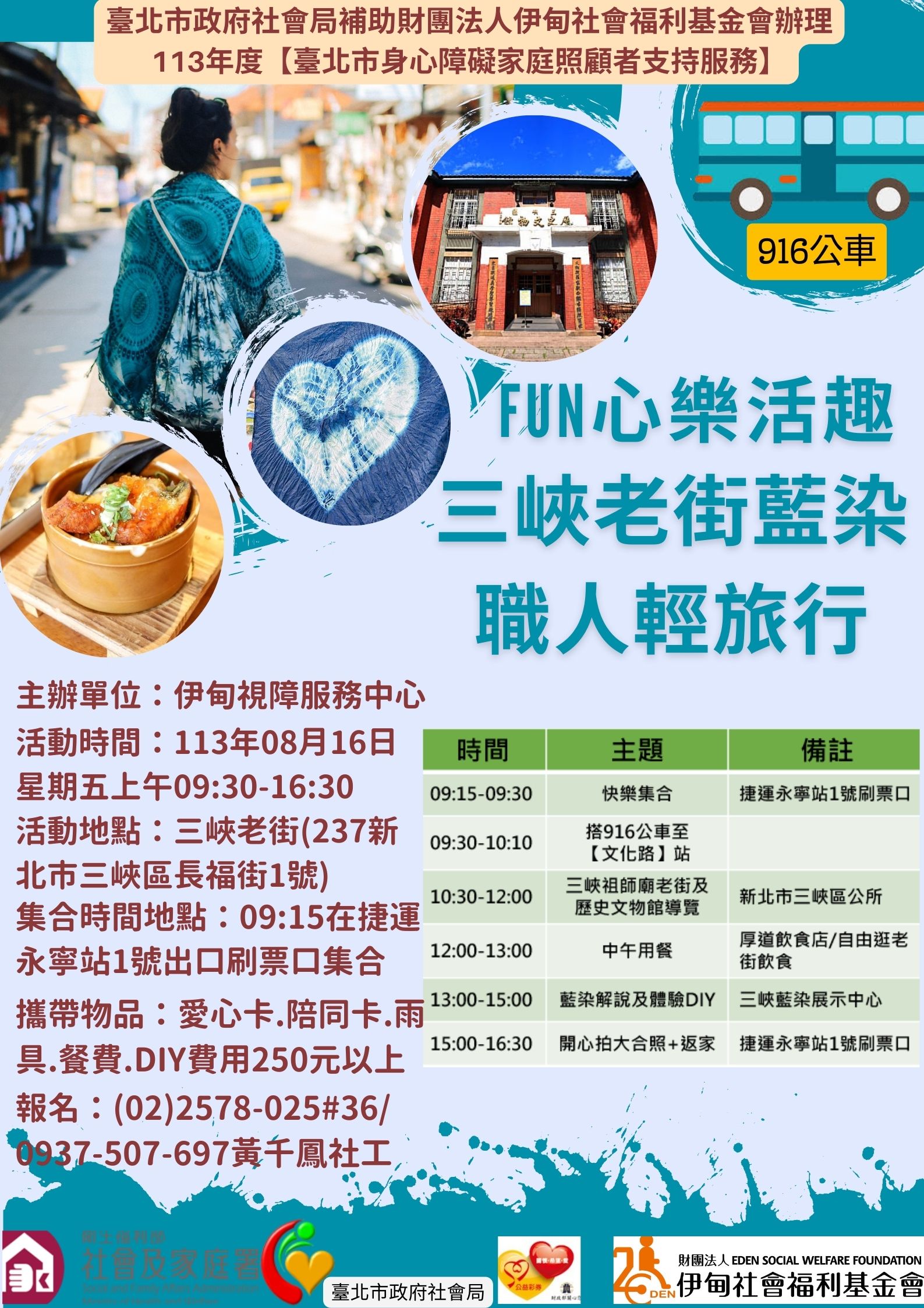 一、活動主題:照顧者Fun心樂活趣《三峽老街藍染職人輕旅行》