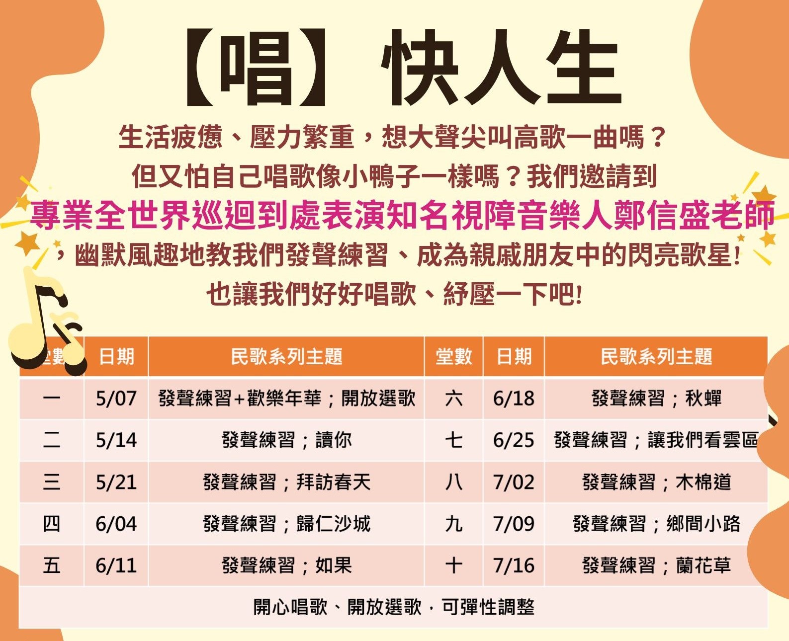 【台北】【平日】5/7-7/16歌唱系列課程活動志工招募(可單堂報名)