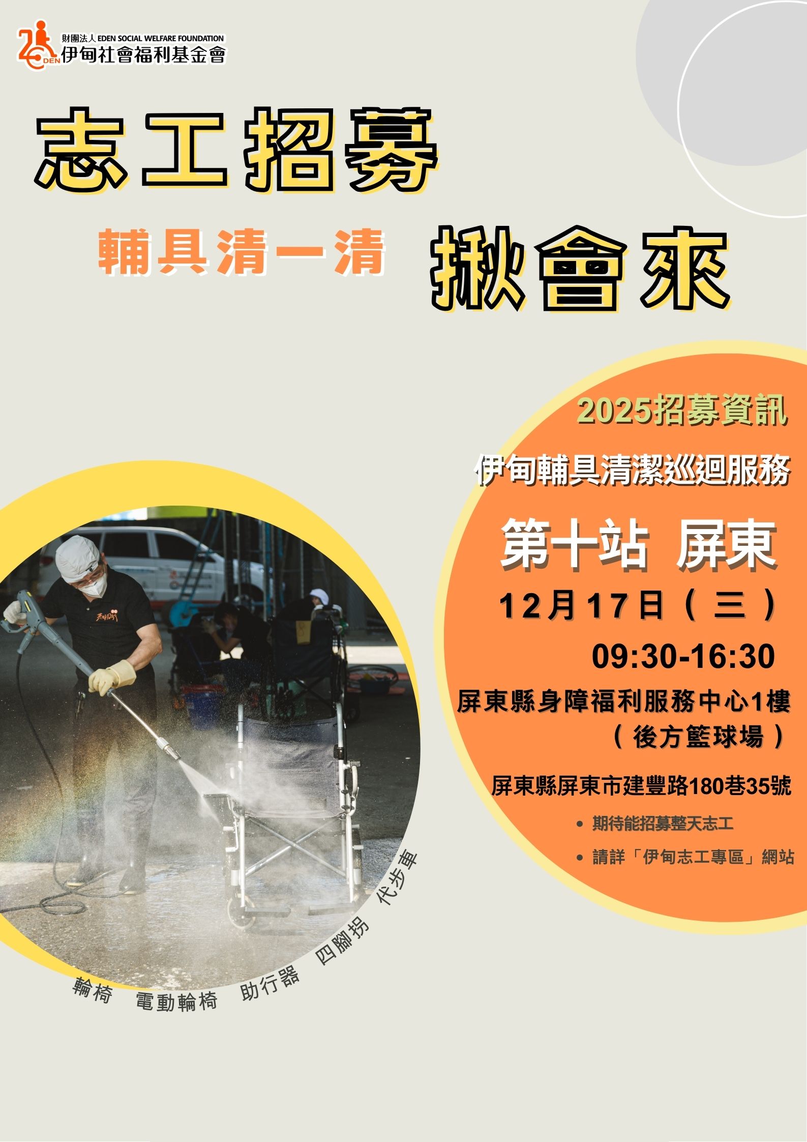 【2025輔具清潔巡迴服務】12/17(三)屏東縣-志工招募揪會來~