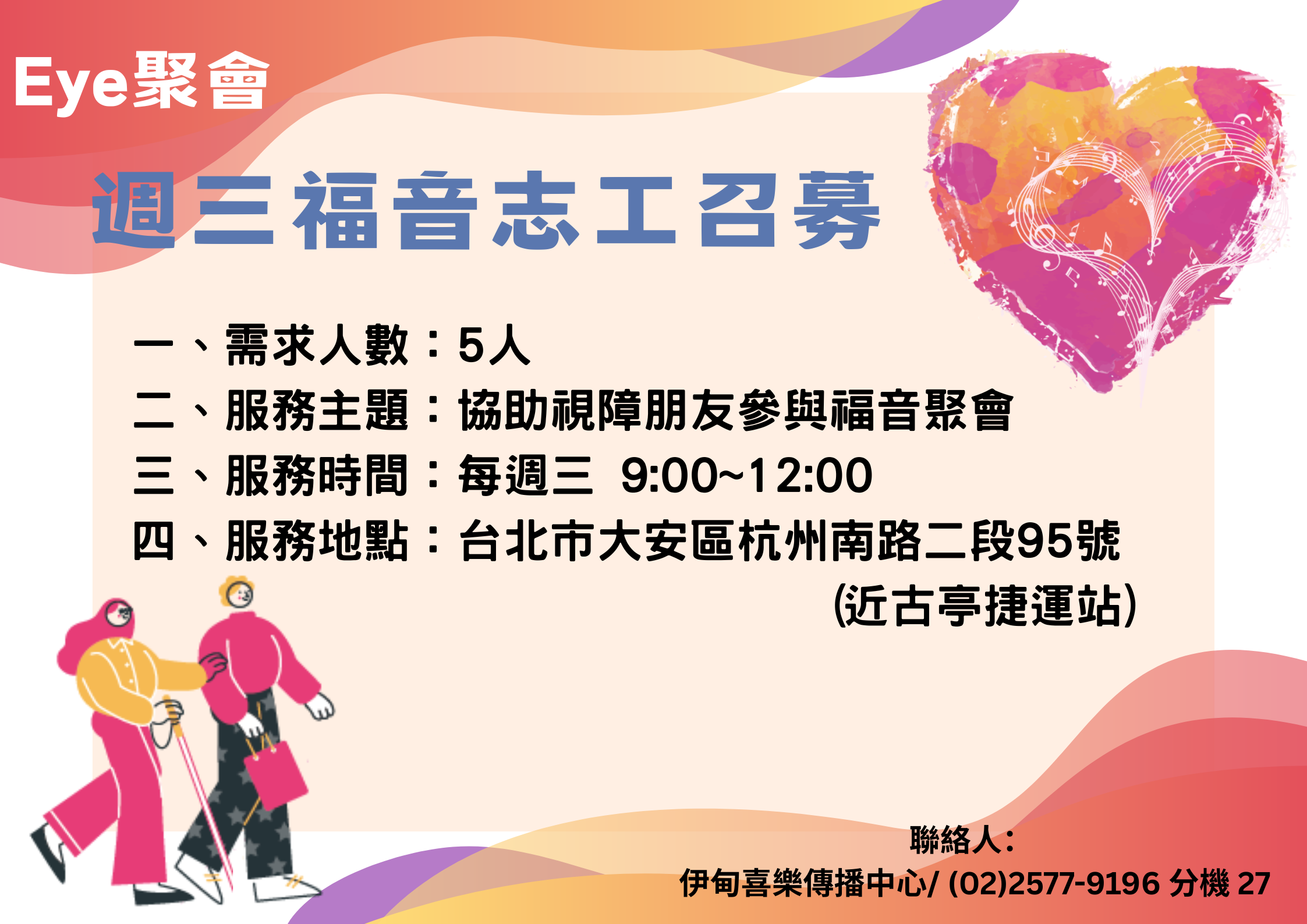六、志工集合資訊:上午9點00於台北市中心神召會教會1樓集合