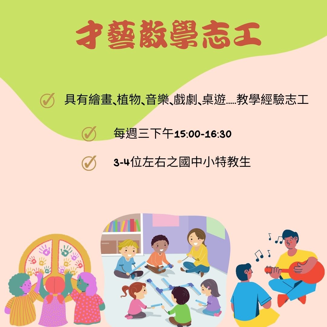 才藝活動帶領,以繪畫、音樂創作、戲劇、植物種植…教學活動經驗。