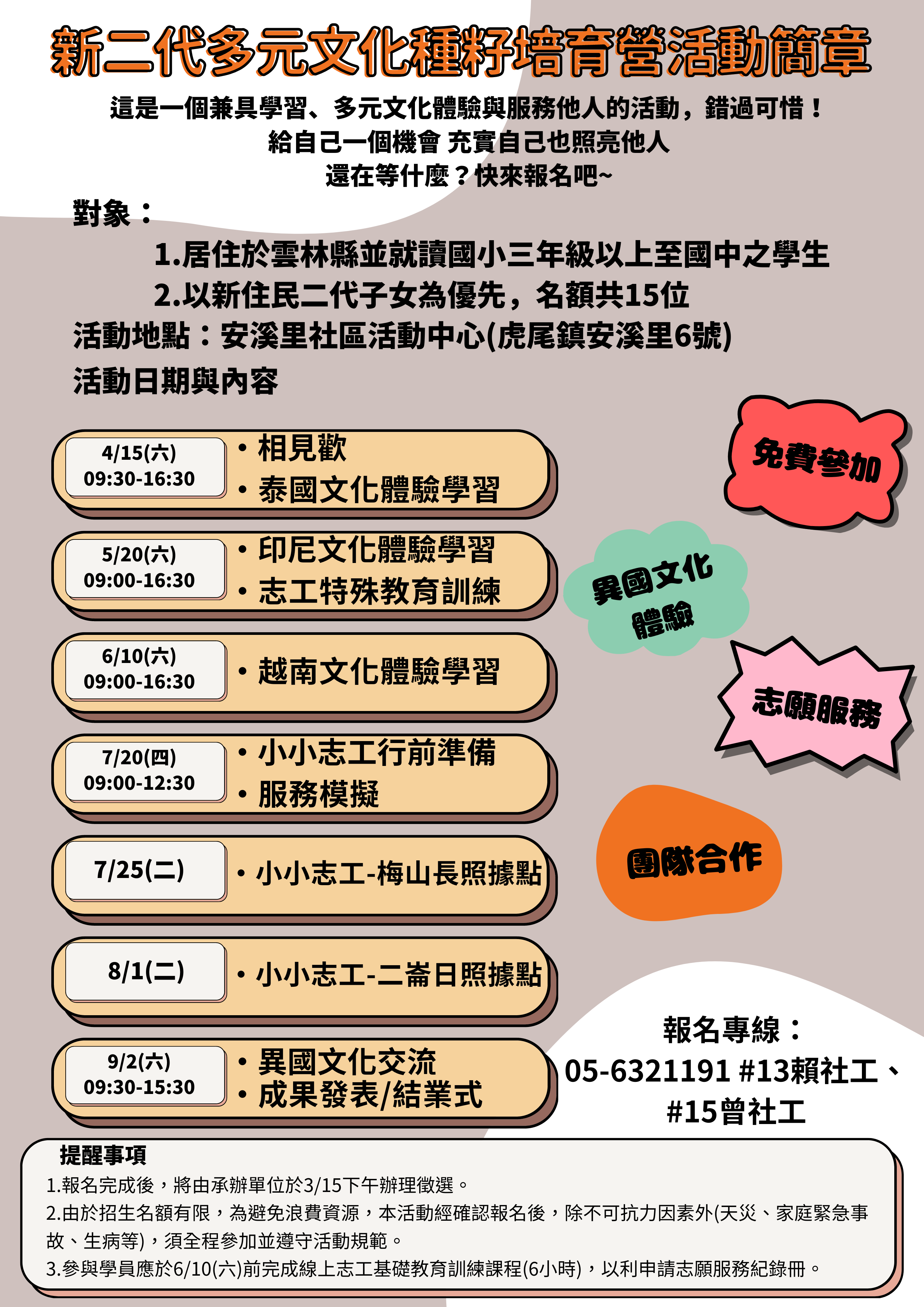 電洽:05-6321191分機 曾社工(分機15)、賴社工(分機13)