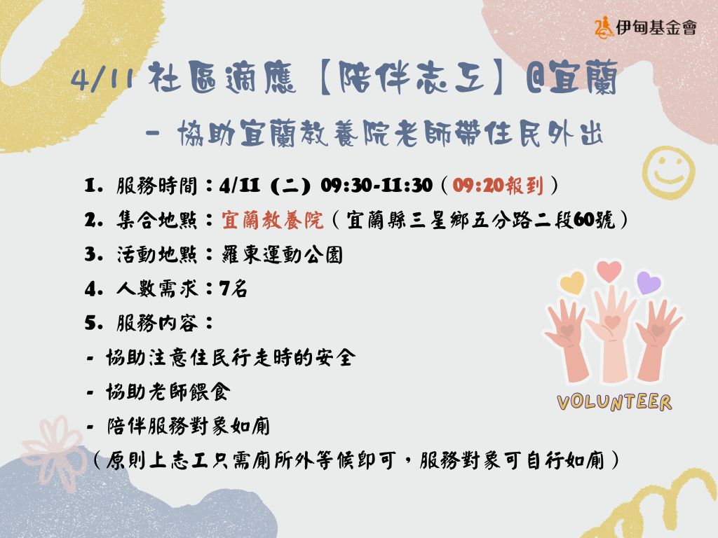 4/11宜蘭教養院住民社區適應【陪伴志工】